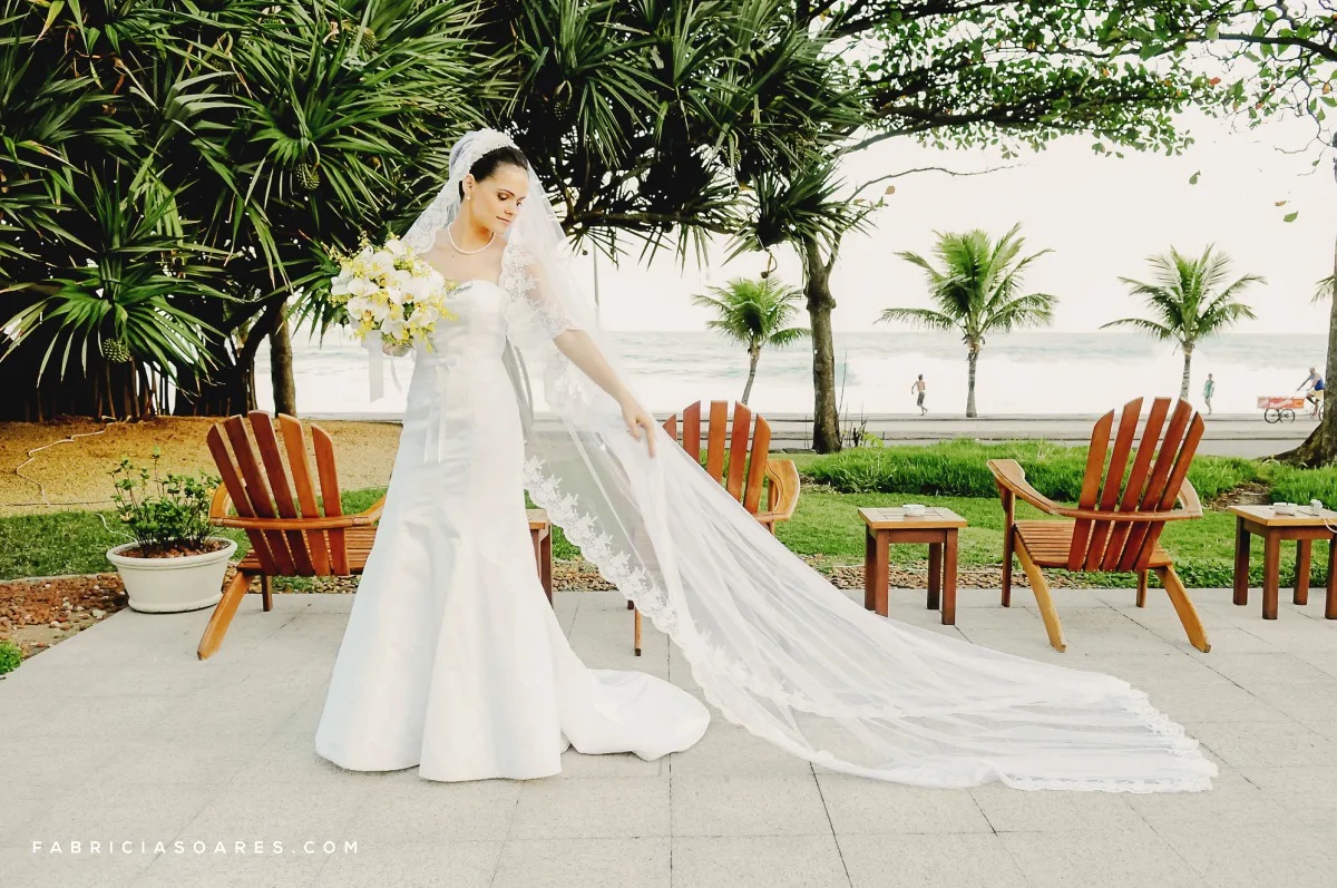 Um dos momentos que me lembro com mais detalhes foi a saída da cerimônia, nos jardins da Villa Riso – e as fotos que a Fabricia captou de nos dois no fim da cerimônia são minhas fotos preferidas e que sempre estão em lugar de destaque na minha casa!